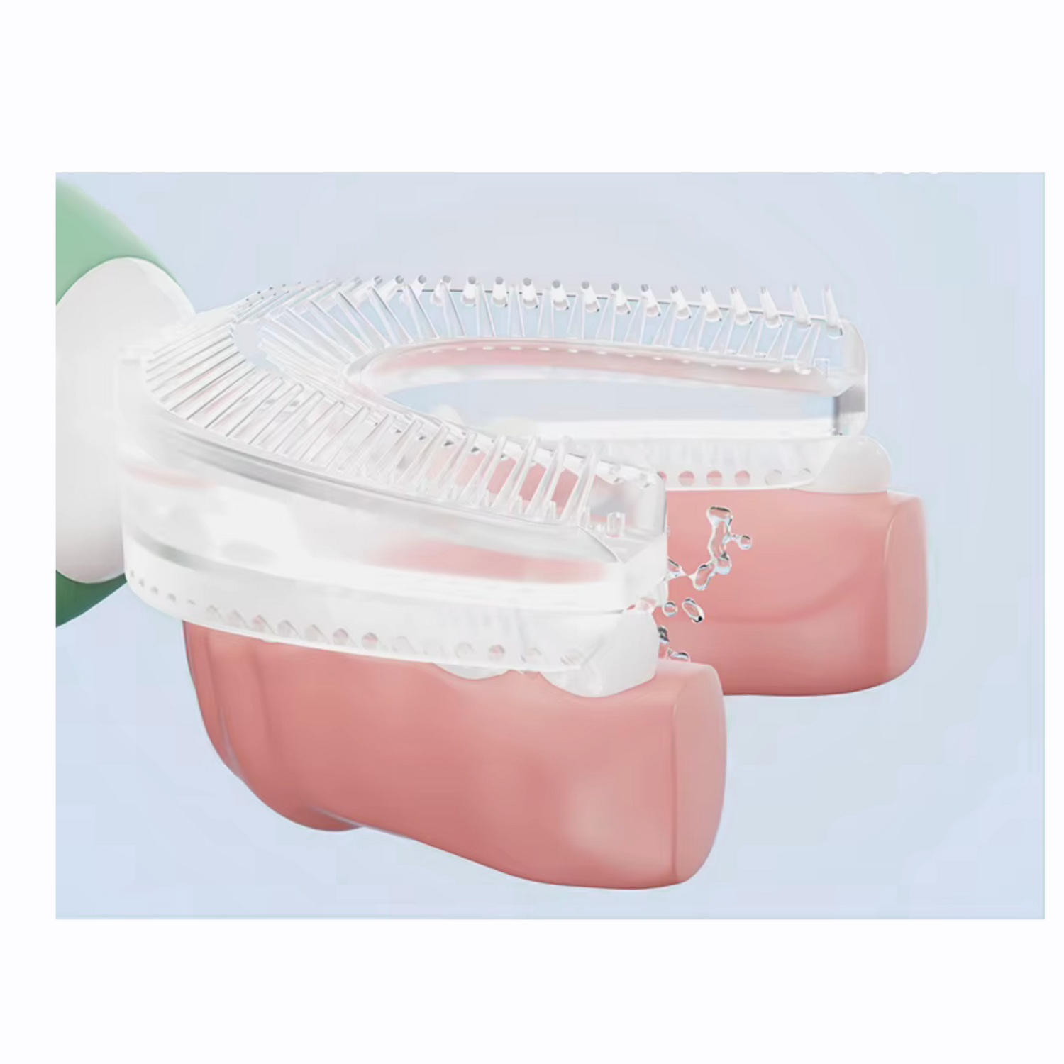 ראש המברשת בצורת U עוטף בעדינות את השיניים ומאפשר ניקוי יומיומי אפקטיבי, גם לילדים שעדיין לא שולטים בצחצוח רגיל.