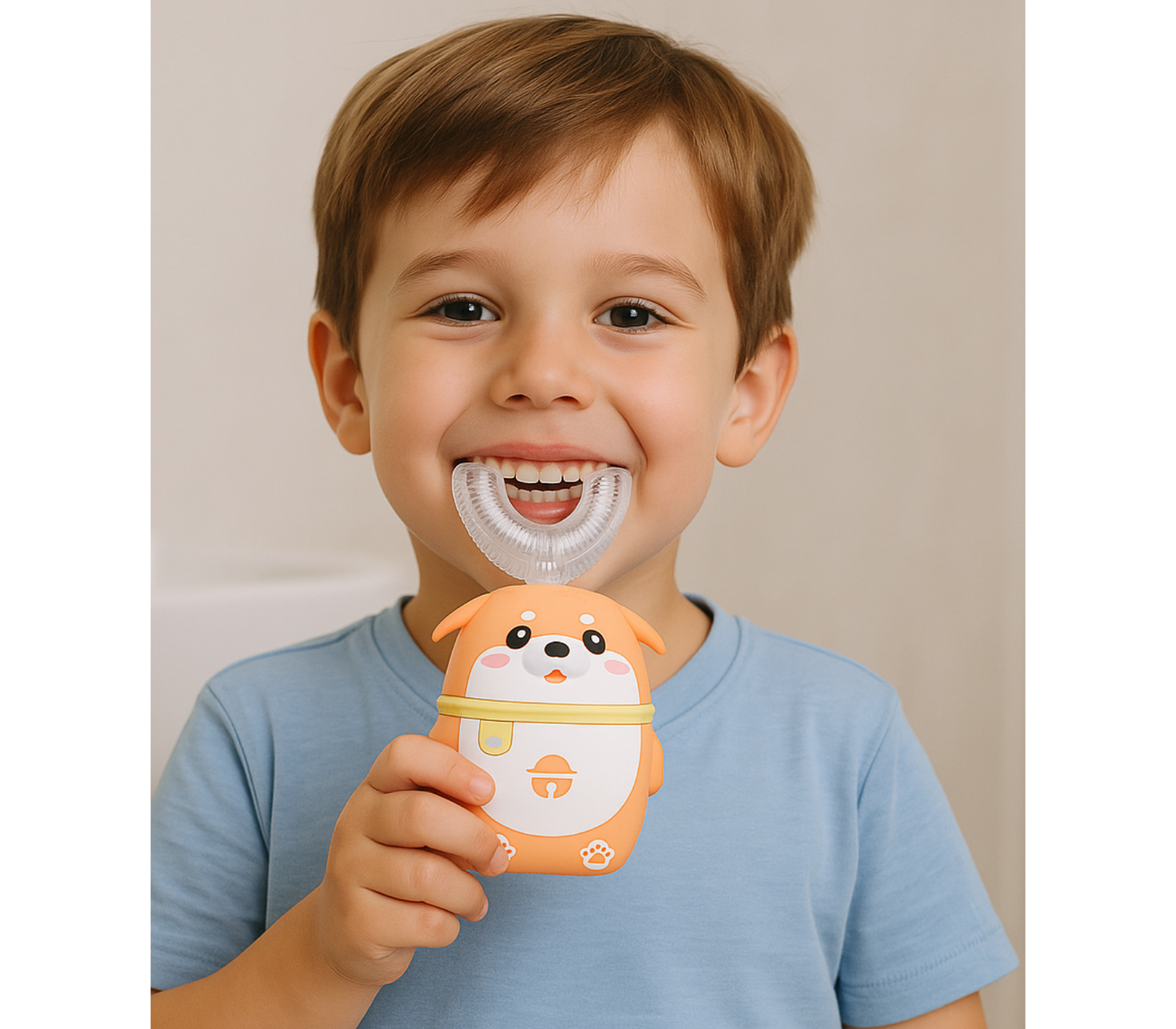 ראש המברשת בצורת U עוטף בעדינות את השיניים ומאפשר ניקוי יומיומי אפקטיבי, גם לילדים שעדיין לא שולטים בצחצוח רגיל.